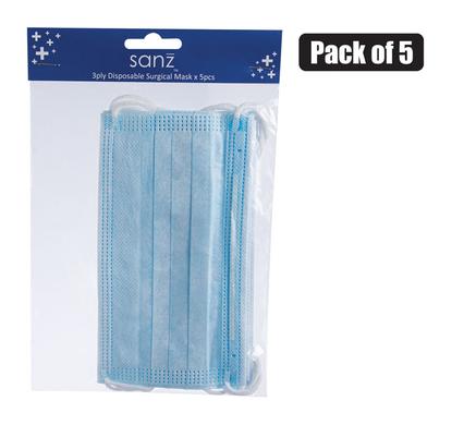Face mask adult disposable 5pc blue
