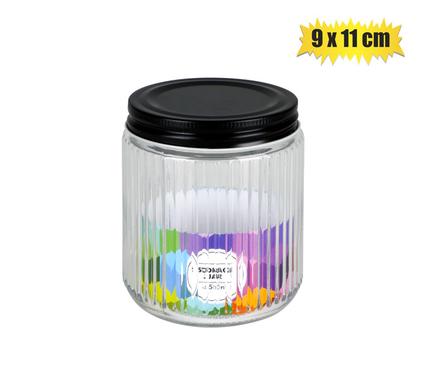 Storage-jar gls ribbed w/blk-lid 9x11cm